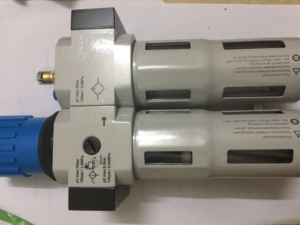 三联件,二联件过滤器,主要由过滤器,给油器,调压阀(减压阀),压力表三部件组成,各部件可根据使用情况进行相应更换,也可根据现场使用要求进行选择单部件使用,如有需求可联系我司专业人员进行参数核对,根据现场情况进行相应型号选择使用。谢谢!